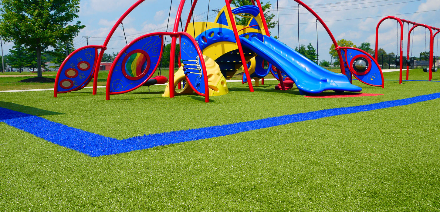 Playground Grass provides a safe, soft surface for unrestrained play. Because the harder kids play, the harder they sometimes fall.